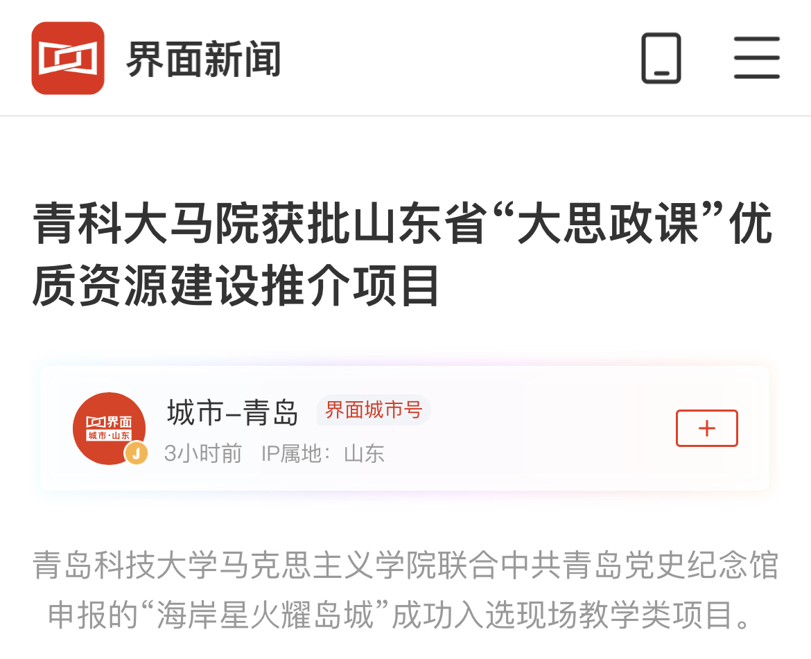 界面新闻:青科大马院获批山东省“大思政课”优质资源建设推介项目