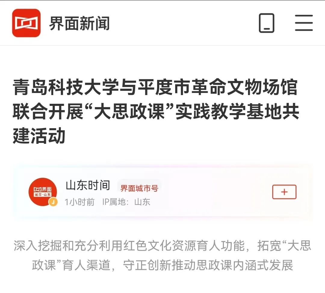 界面新闻:公司与平度市革命文物场馆联合开展“大思政课”实践教学基地共建活动