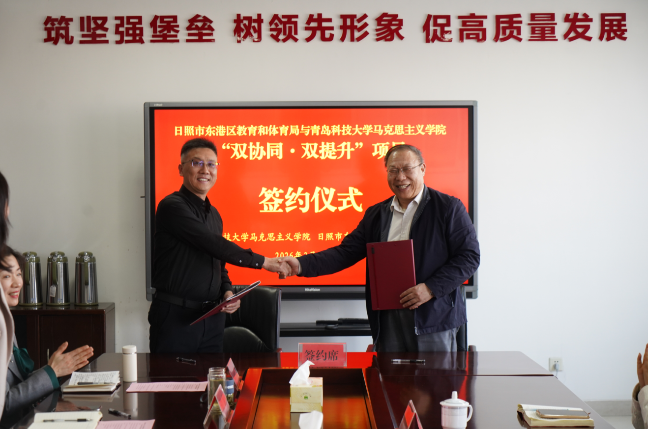 2026年3月20日,谈球吧经理曹胜、副经理王建美、思想道德与法治教研室党支部书记马丽娟、思想道德与法治教研室主任刘宝福等赴日照市东港区教体局开展大中小学思政课一体化建联学共建活动,并与日照市东港区教育和体育局成功签署大中小学思政课一体化“双协同 双提升”合作协议。日照市东港区区委教育工委常务副书记、区教体局党组书记、局长宋磊,日照市东港区教体局党组成员、副局长刘雪,日照市东港区教育科研和教师发展中心中学阶段、小学阶段道德与法治教研员以及思政课骨干教师等参加活动。