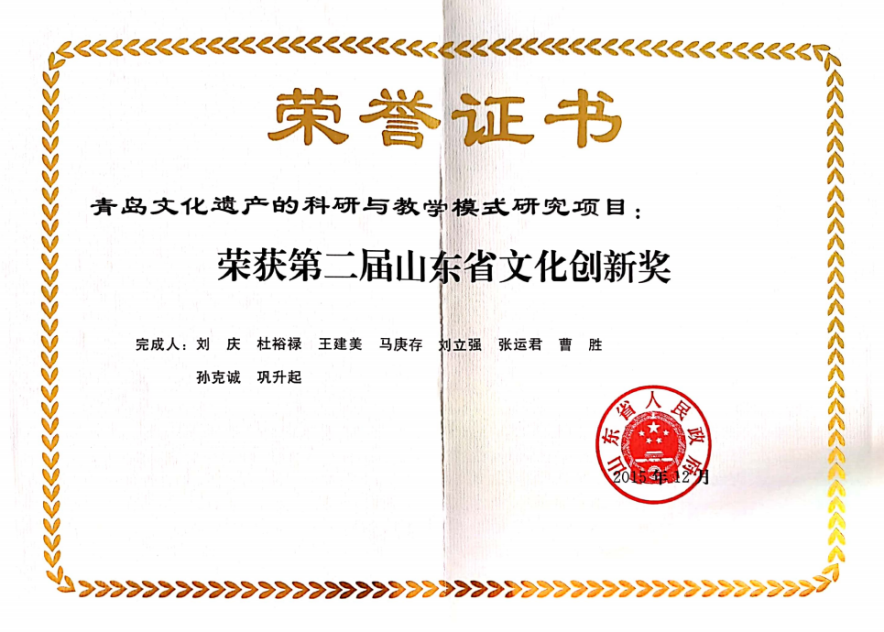 第二届山东省文化创新奖:青岛文化遗产的科研与教学模式研究项目