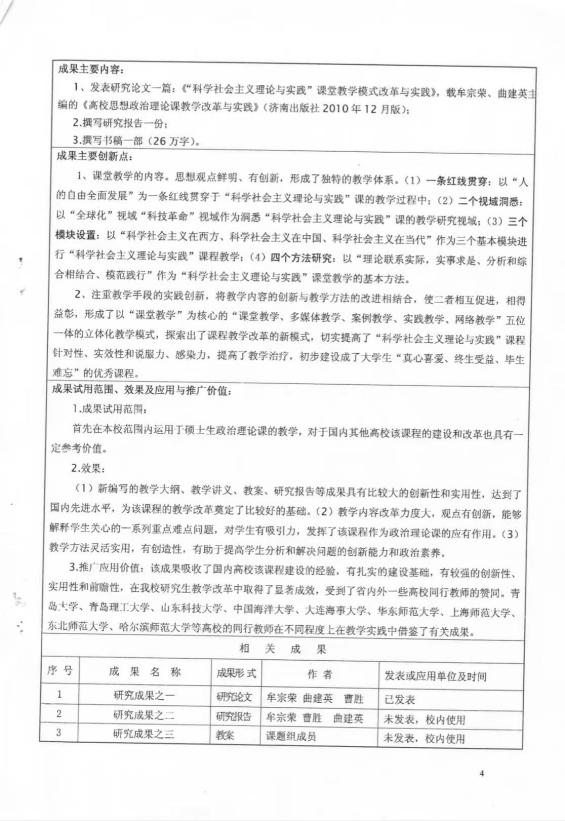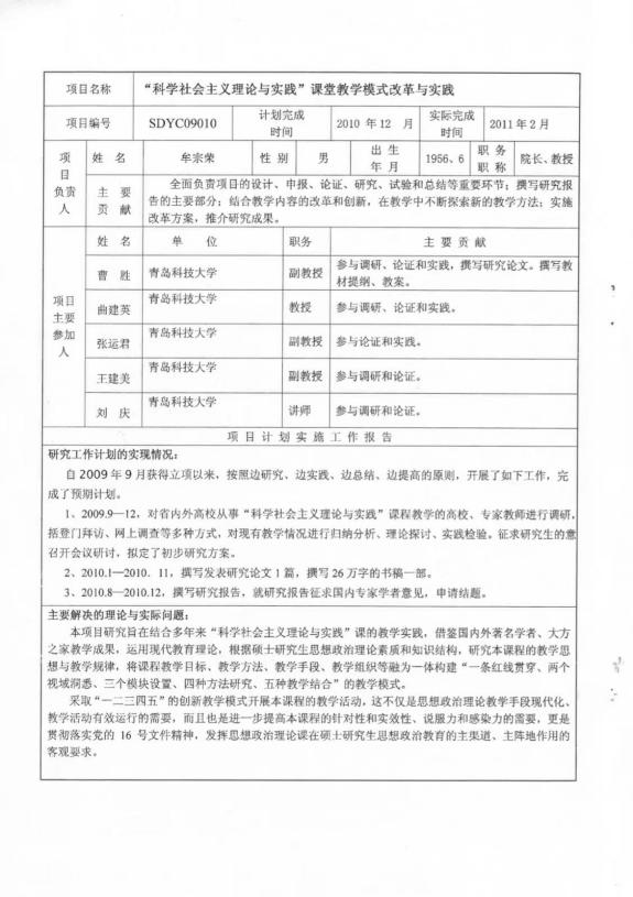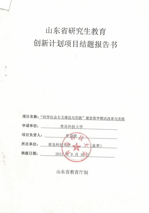 山东省研究生教育创新计划项目:“科学社会主义理论与实践”课堂教学模式改革与实践