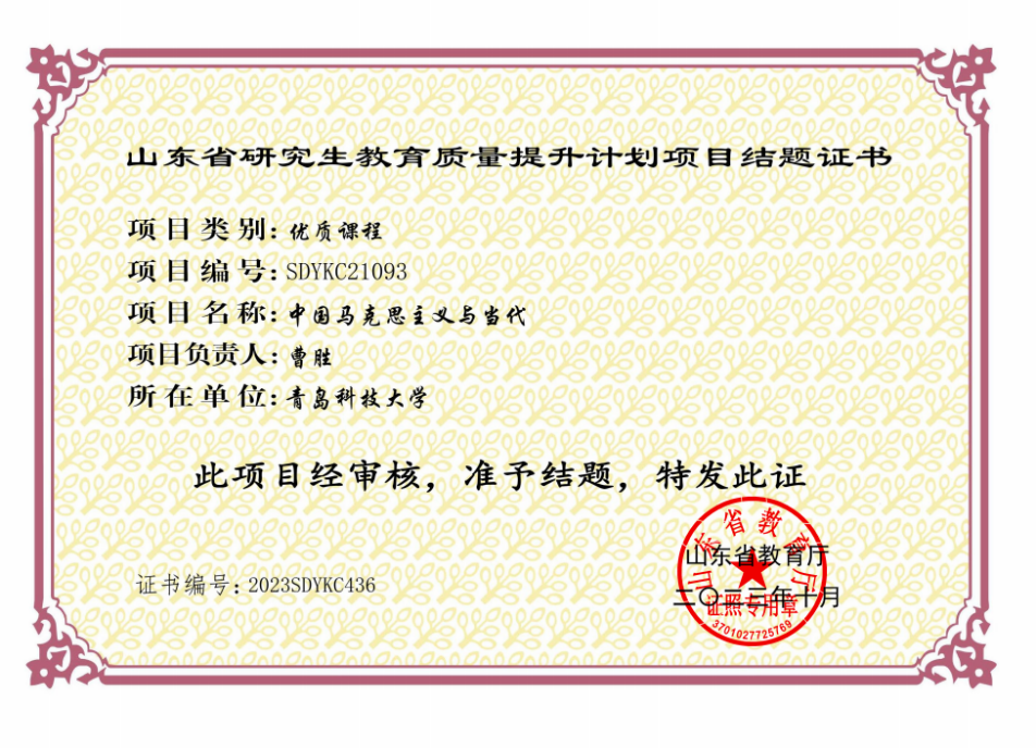 山东省研究生教育优质课程:中国马克思主义与当代