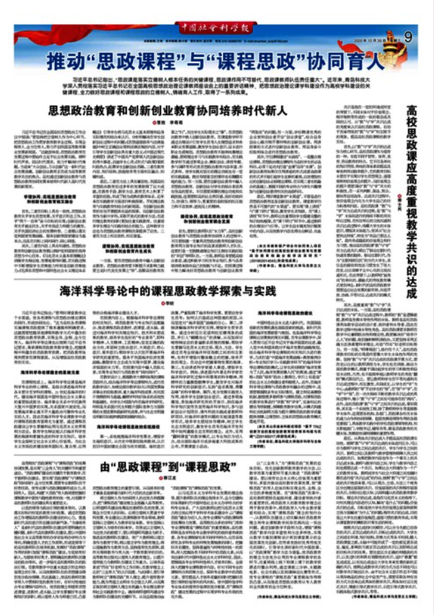 《中国社会科学报》:海洋科学导论中的课程思政课教学探索与实践