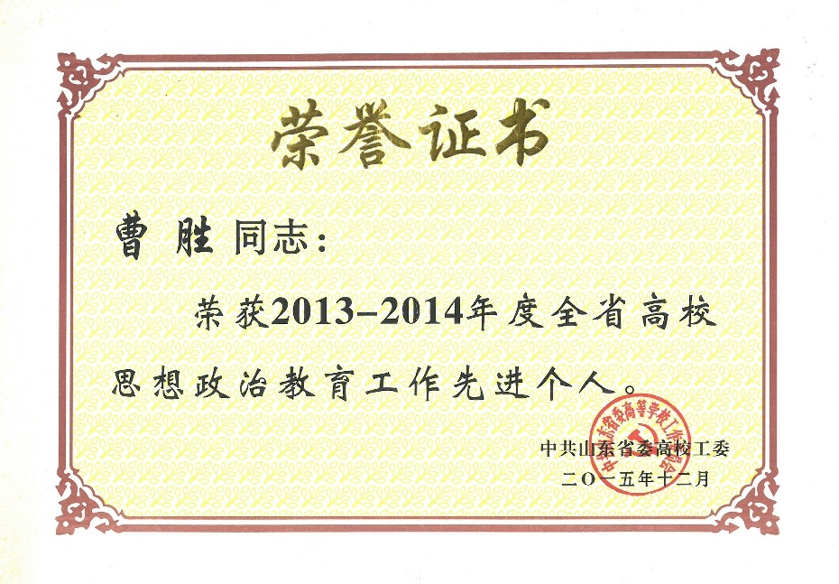全省高校思想政治教育工作先进个人:曹胜