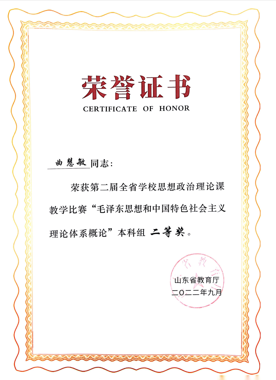 第二届全省公司思政课教学比赛二等奖: 曲慧敏