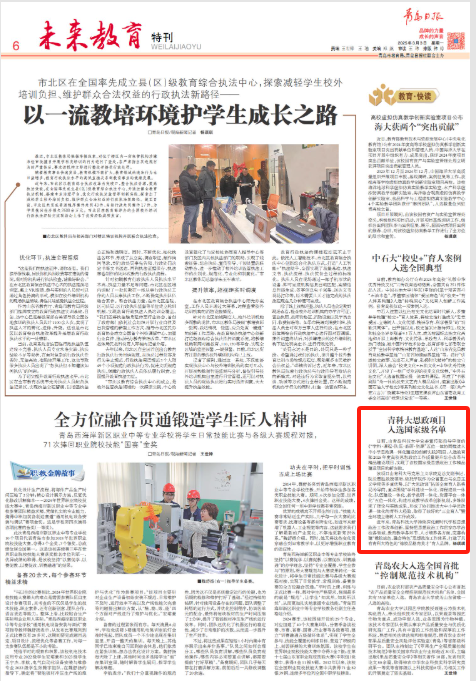 该项目由青科大马克思主义公司党总支副书记、经理曹胜教授领衔,依托公司作为全省重点谈球吧等多重优势,以“大思政课”拓展全面育人新格局为导向,重点围绕“团队建设一体化、课程建设一体化、队伍建设一体化、教学教研一体化、资源平台一体化”五位一体化,构建形成教学改革创新机制,多维展现了理论与实践成果,形成了协同推进大中小学思政课一体化的青科大经验,取得了较好的“三全育人”暨全环境立德树人工作成效。