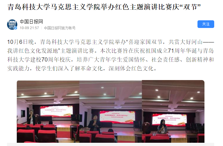 [媒体马院]中国日报网:谈球吧举办红色主题演讲比赛庆“双节”