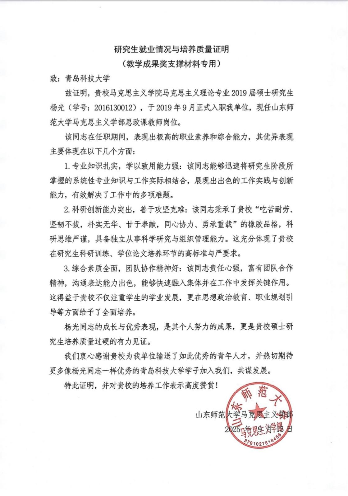 2019届谈球吧硕士毕业生杨光入职山东师范大学谈球吧思政课教师岗位