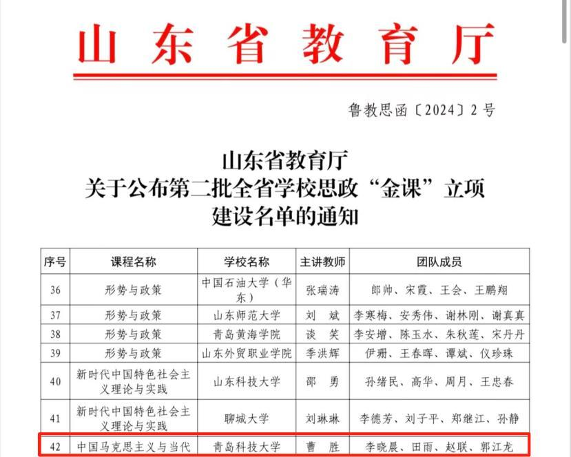 2024年山东省思政课“金课”:《中国马克思主义与当代》