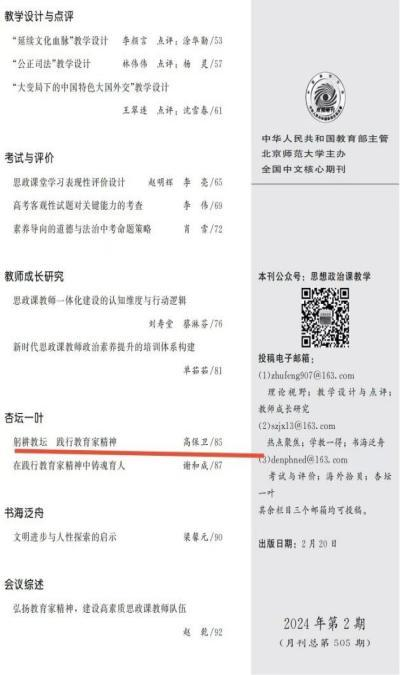 思想政治课教学202402:《躬耕教坛践行教育家精神》