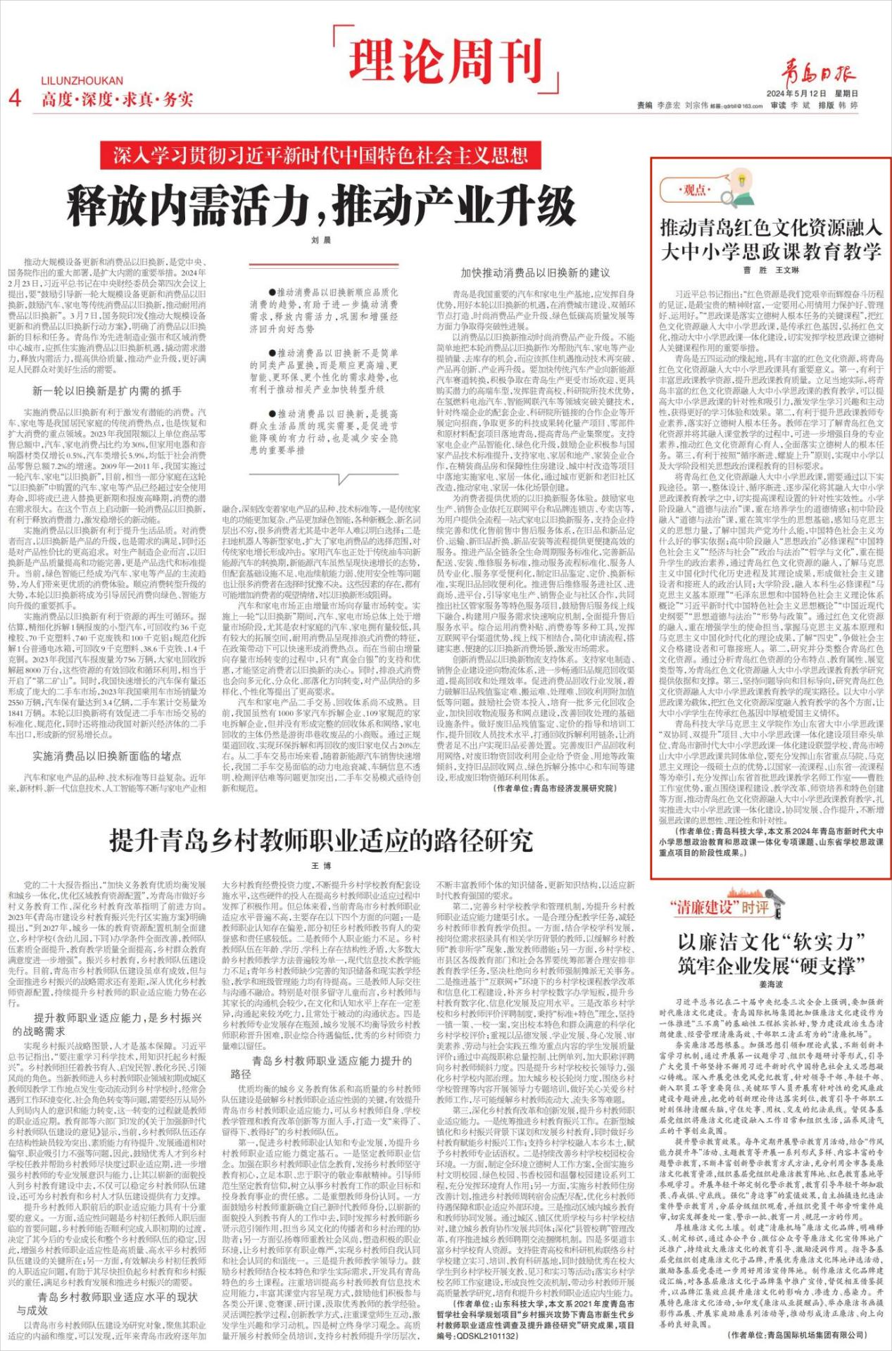 青岛日报20240512:《推动青岛红色文化资源融入大中小学思政课公司产品》