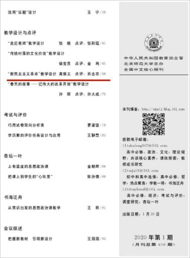 思想政治课教学202001:《新民主主义革命教学设计》,中文核心期刊思想政治课教学202001:《新民主主义革命教学设计》,中文核心期刊