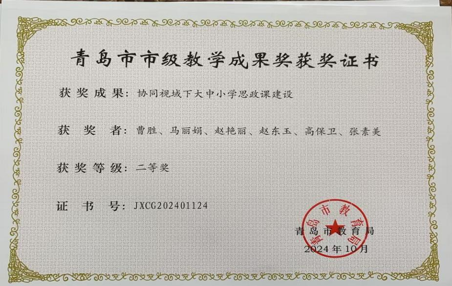 2024年:青岛市教学成果奖二等奖