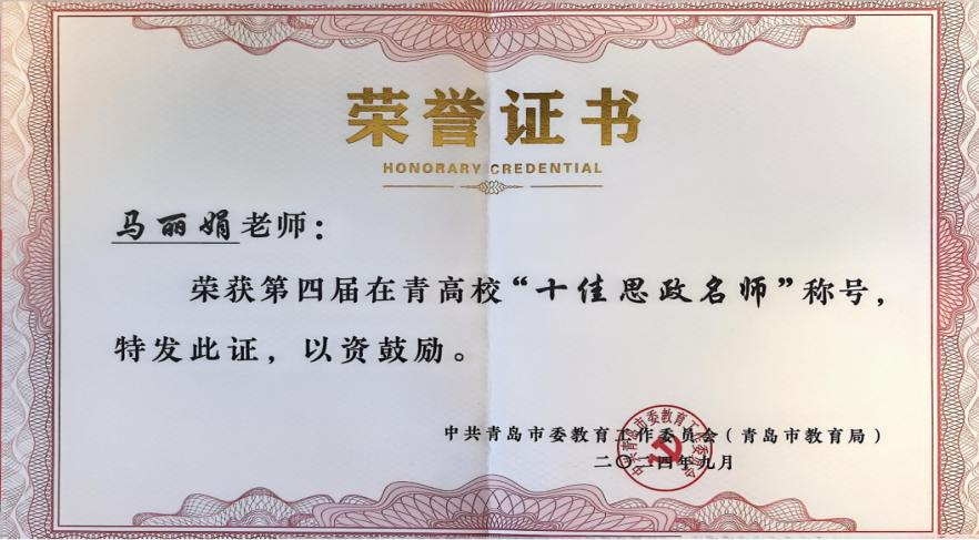 2024年:获评在青高校“十佳思政名师”——马丽娟