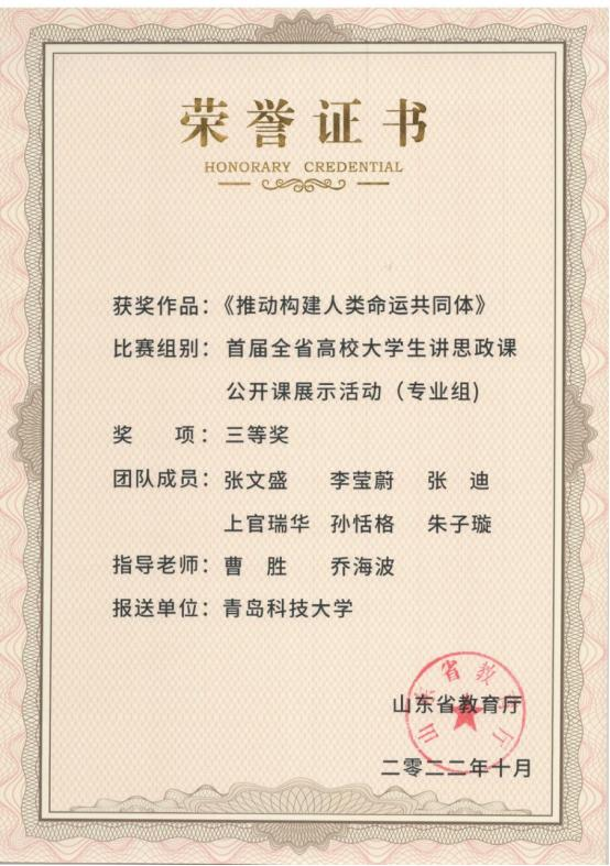 2022年:首届全省高校老员工讲思政课公开课展示活动(专业组)三等奖