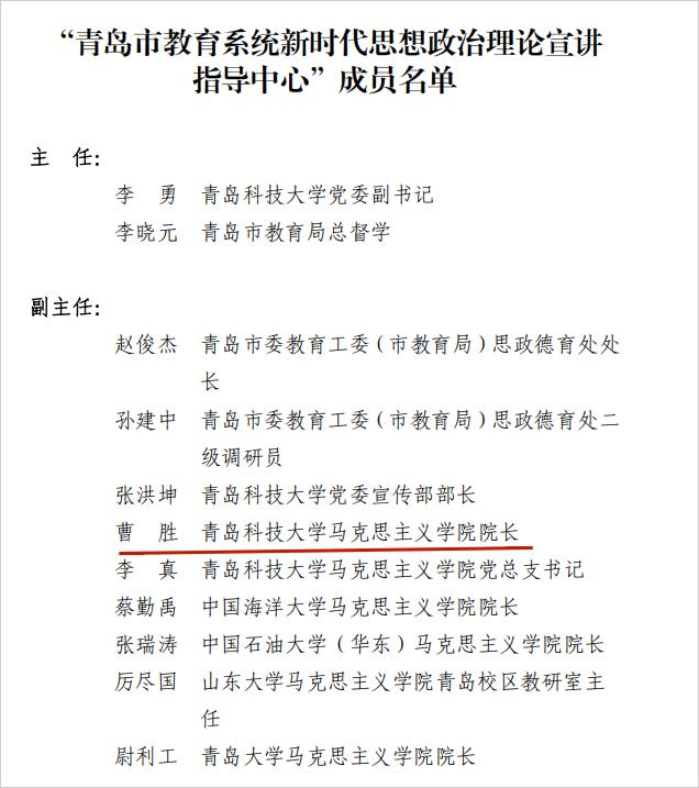青教工委“青岛市教育系统新时代思想政治理论宣讲指导中心”成员
